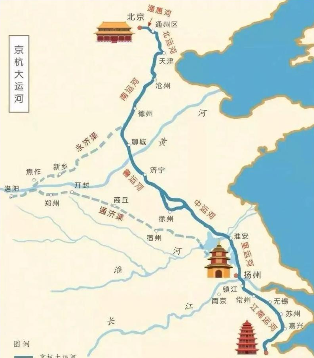 于是,著名的科学家、水利专家郭守敬登场了。据《元史·郭守敬传》记载,他主持修凿了通惠河,并对运河进行了大规模的裁弯取直,让运河不再绕道洛阳,而是从杭州直通北京,这就是今天我们看到的京杭大运河。